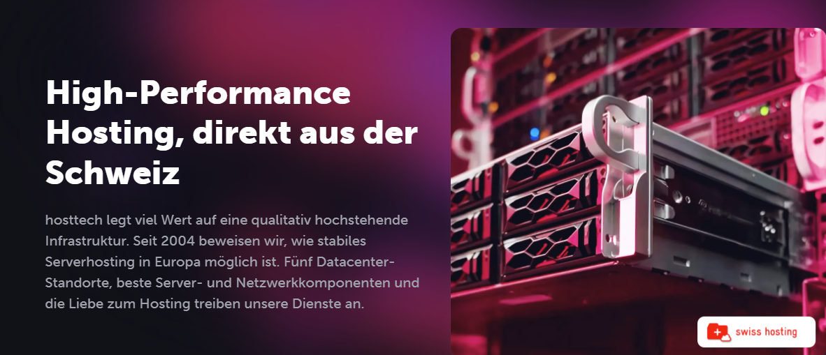 Hosttech betreibt ein Rechenzentrum unter dem Namen DATAROCK in Nottwil, Schweiz, das sich in einem ehemaligen Militärspital befindet und 15 Meter unter der Erde liegt. Dieser Standort wird für eine hohe Sicherheit und Verfügbarkeit genutzt und verfügt über eine starke Gateway-Anbindung von 3 × 100 Gbit/s.