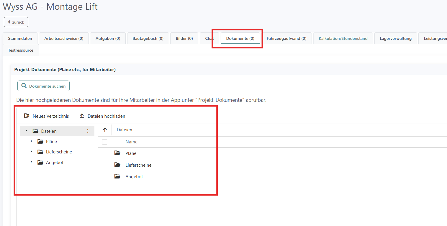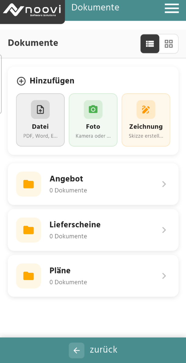 - Auch für Projekt-Dokumente könnt ihr nicht nur Pläne oder Fotos/Bilder ansehen, sondern auch selbst über die App hochladen. Hier solltet ihr nur bei der Auswahl der Ablagestelle, achtsam sein.