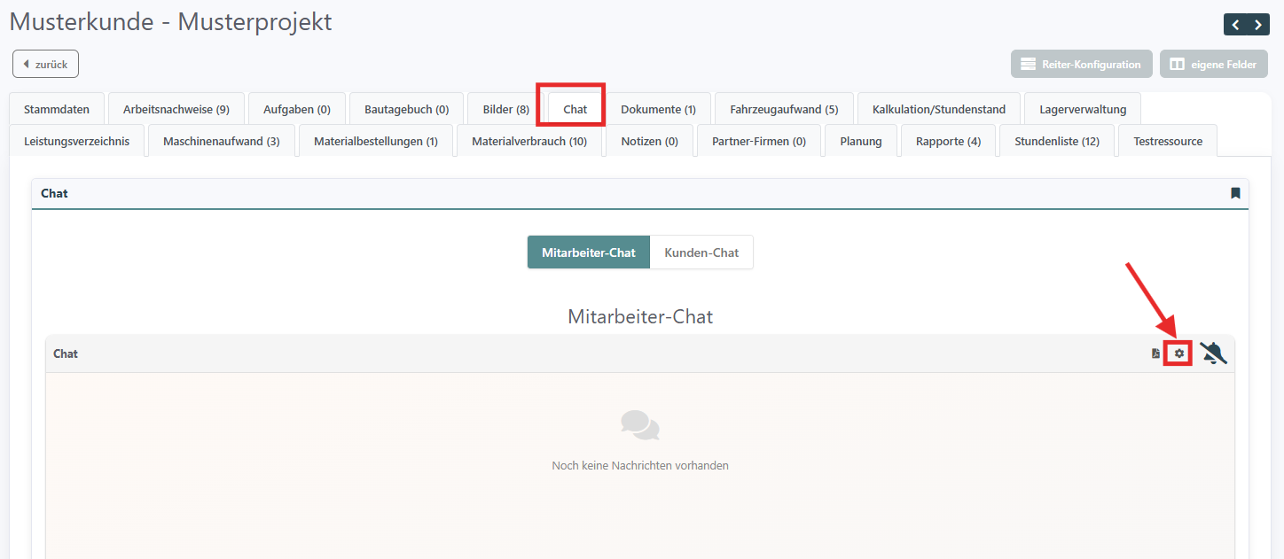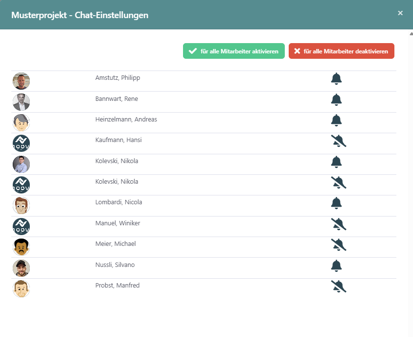 Mitarbeiter, die Nachrichten gesendet haben: Wenn ein Mitarbeiter mindestens eine Nachricht im jeweiligen Projekt-Chat geschrieben hat, bekommt er auch eine Benachrichtigung.