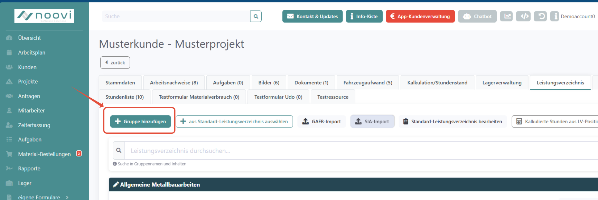 Über unseren SIA-Import können Sie ein komplettes Leistungsverzeichnis aus externen Softwares einspielen. Eine Anleitung finden Sie hier: SIA Schnittstelle – Leistungsverzeichnisse importieren : Noovi
