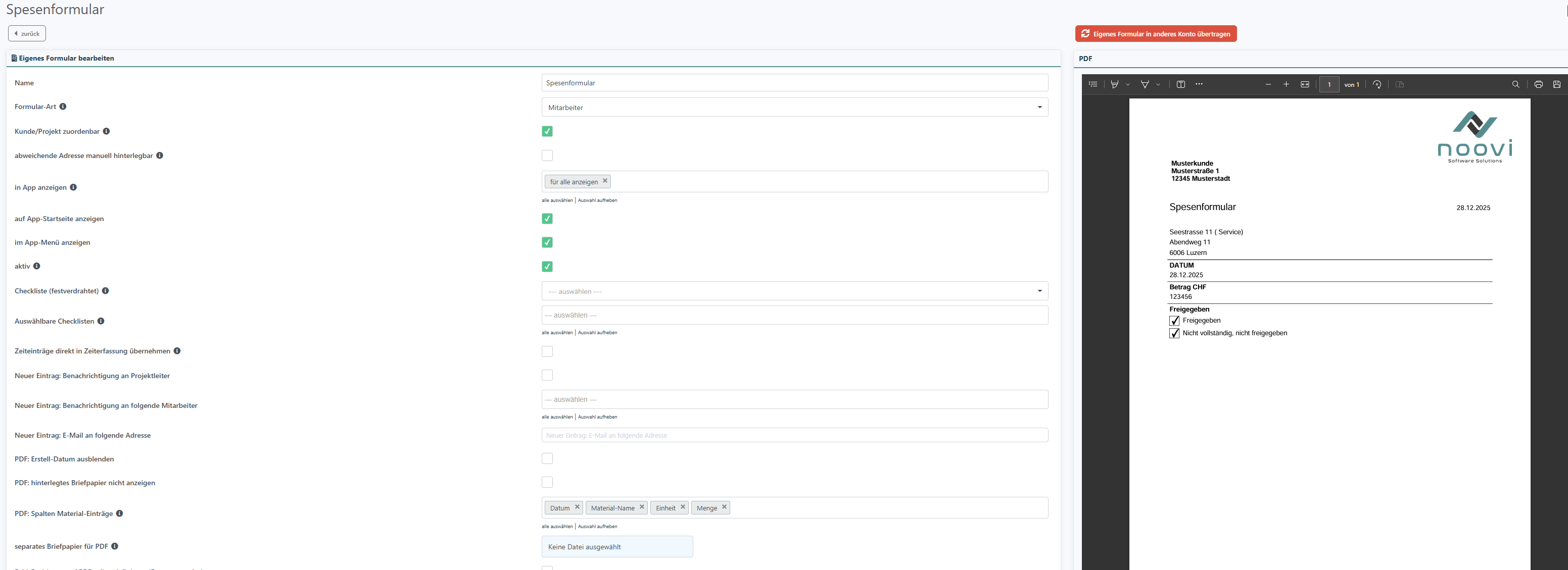 Das ausgefüllte Formular finden Sie nun im Verwaltungssystem auf der llnken Seite. Sie können das Formular hier auch bearbeiten, falls nötig.