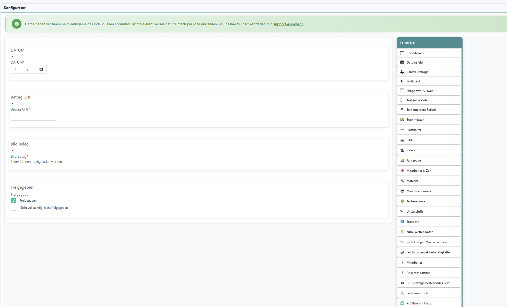 Wenn Sie auf das Formular klicken, können Sie es hier wie gewohnt bearbeiten