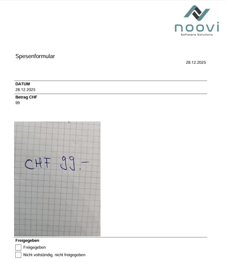 Klicken Sie auf "PDF-Spesenformular" und Sie erhalten eine PDF-Datei, die wie folgt aussieht: