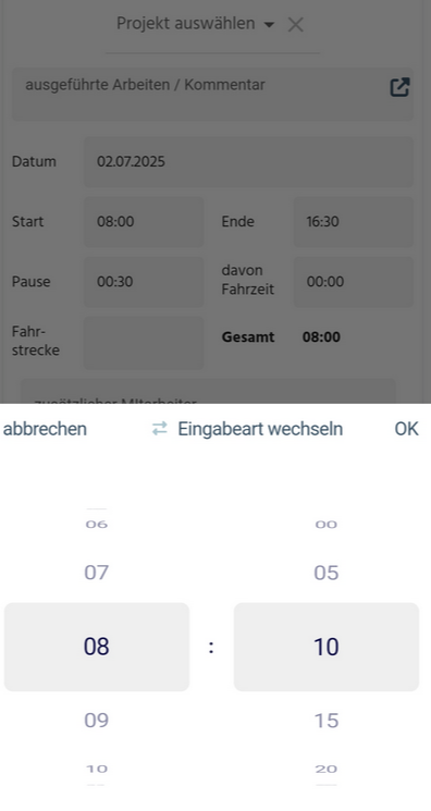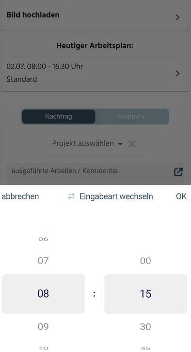 Damit können Sie festlegen, in welchem Intervall Ihre Mitarbeiter in der App ihre Zeiten erfassen können.