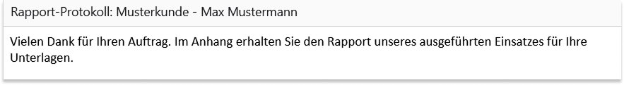 Wenn Sie nun in der App einen Rapport per E-Mail versenden, wird dieser Text angezeigt: