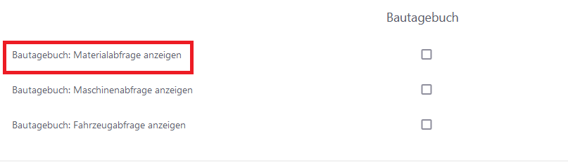 und setzen Sie den Haken bei "Bautagebuch: Materialabfrage anzeigen"