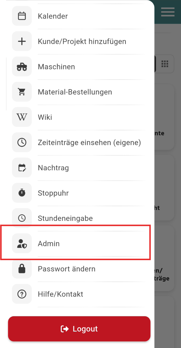 Wenn Sie als Admin freigeschaltet sind, können Sie die Kundendaten in der App wie folgt einsehen: