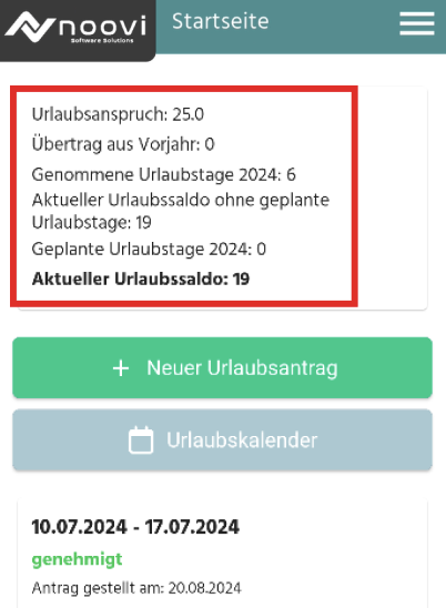Nun wird der Urlaubssaldo in der App nicht mehr angezeigt: