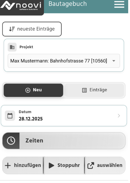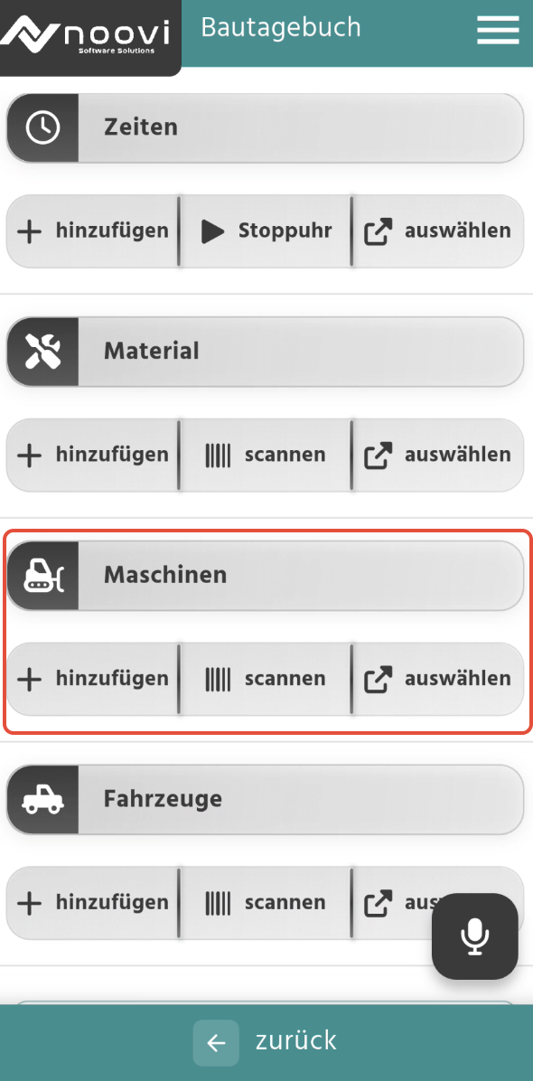 Standardmäßig ist im Bautagebuch keine Maschinenabfrage hinterlegt.