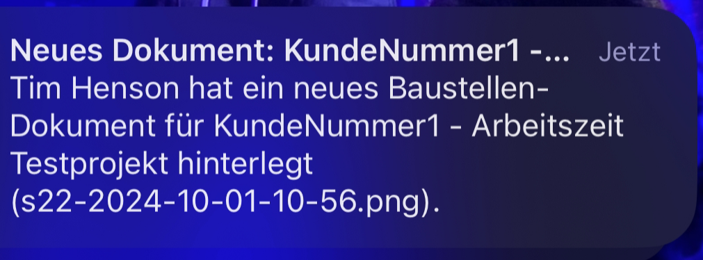 Wenn Sie eine Push-Benachrichtigung an die Führungskräfte einstellen wollen, wenn ein Mitarbeiter ein neues Dokument in einem Projekt hochlädt, gehen Sie wie folgt vor: