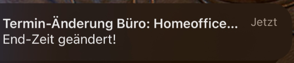 Bei jeglicher Änderung eines Termins, indem der Mitarbeiter nun eingetragen ist, bekommt dieser eine Push-Benachrichtigung auf sein Handy: